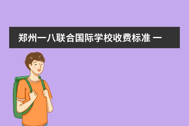 你好,郑州一八联合国际学校收费标准如下:普高班学费17100元/年;住宿费 1600 元/年。一八联合国际学校是于2008年由郑州市教育局批准成立的一所民办完全中学,占地60亩。学校面向全省招生,规模为38个班,目前共有在校生2000余名。